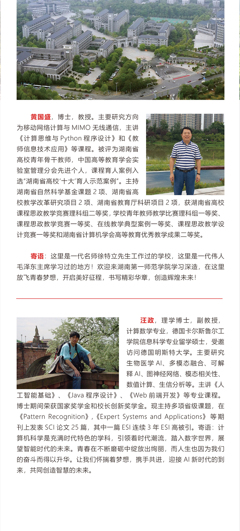 学院立足长沙、面向行业、依托企业、服务区域,主动对接国家和区域经济社会发展需求,以“一四”战略为指引,全面落实 “两坚持两拓展”办学思路,坚定不移地走 “特色鲜明的师范大学”发展之路,确立“建设一流学科,组建一流团队,引育优秀人才,争创优质成果”发展目标,切实履行做大计算机类学科的光荣使命。