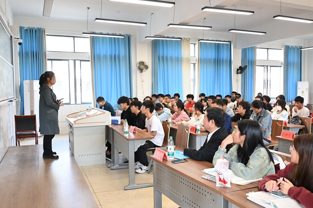 学业导师代表伍湘琼结合自己的大学学习经历,提出了学习建议:要多和老师交流,发挥自己的长处,多参加竞赛,积极参与科研,规划好自己的大学四年。她还分享了指导学生的经验和心得体会,介绍了如何通过定期与学生交流、组织学习小组等方式,提高学生的学习积极性和学习效果。她通过介绍自己在指导学生参加学科竞赛方面的经验,鼓励全班同学积极参与实践活动,努力培养创新能力和实践能力。