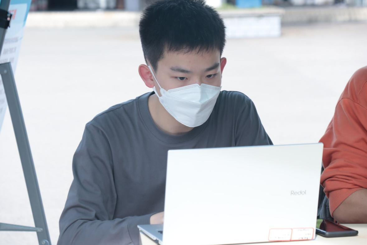 维修现场,电脑E家人成员热心帮助前来维修的同学维修电脑。现场出现了一位同学的电脑无法下载任何软件的情况,但电脑E家人成员还是轻松的解决了问题,这位同学说:“真的非常感谢你们,之前我找了许多办法都无法解决这个问题,有你们真好啊!”从同学们的话语中看到了此次活动的意义以及同学们的支持度,同时感受到了疫情封校生活下同学之间的互相帮助。