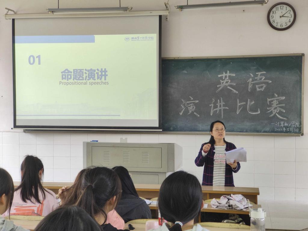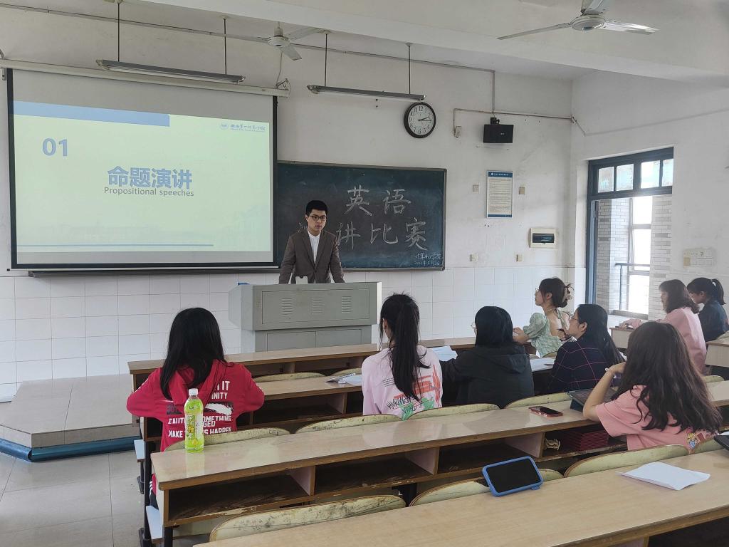 为了营造良好的英语学习氛围,激发学生英语学习兴趣,2022年5月3日14时,AWC万象城娱乐大学生英语演讲比赛复赛在玉衡北411教室开展,出席本次比赛的指导老师有外国语学院曾碧锋老师和AWC万象城娱乐学工办付小霞老师。