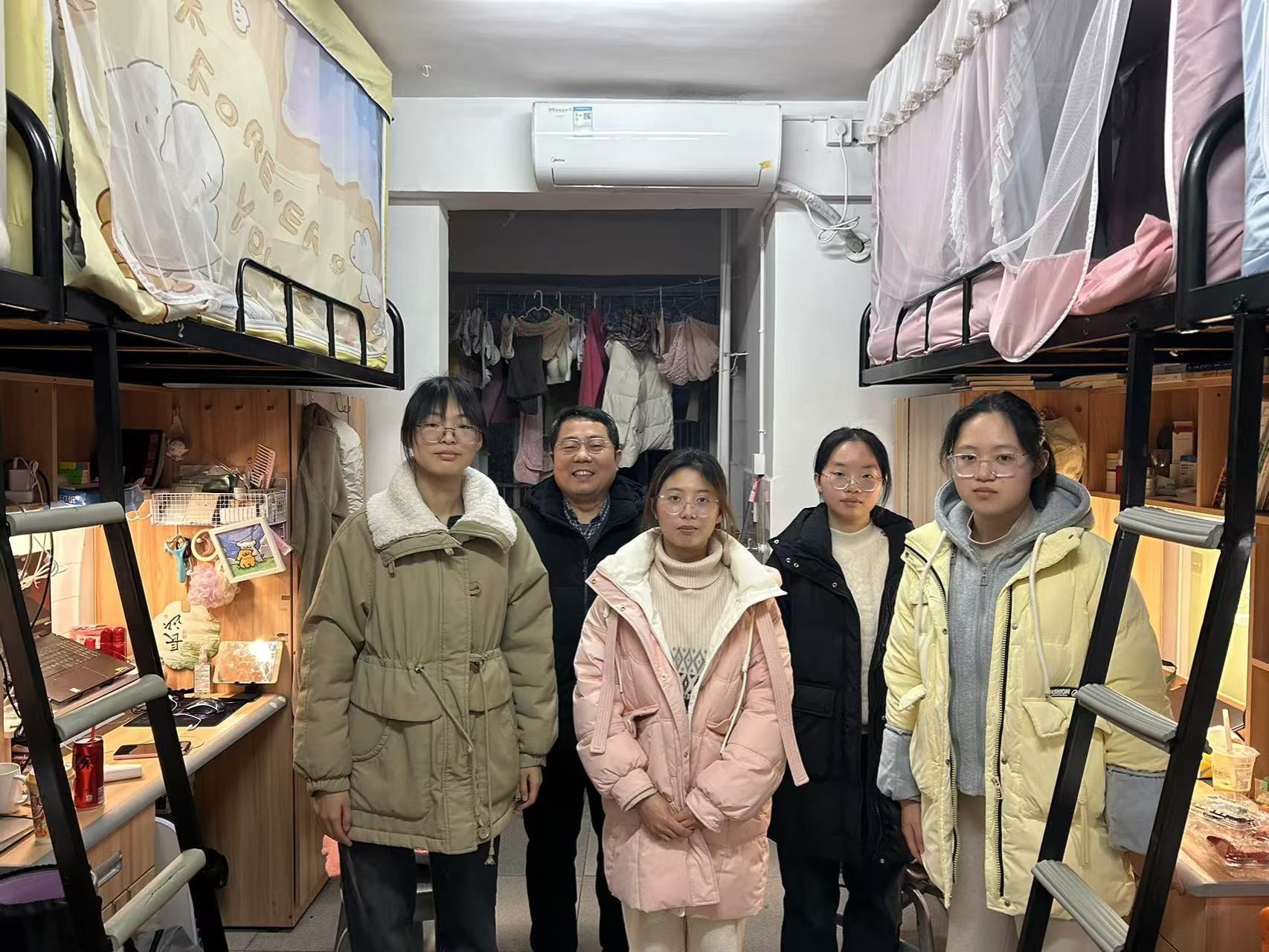 走访过程中,学院领导仔细询问同学们假期生活的收获与感受,关心大家的返校适应情况,特别叮嘱同学们注意用电安全,保持宿舍整洁卫生,营造良好的生活环境。院长杨恒伏在走访中强调,老师们要将“三全育人”贯彻落实到学生工作的每一处细节。他指出,全员育人意味着学院的每一位教职工都肩负育人责任,无论是授课教师、辅导员还是行政人员,都应在各自岗位上为学生成长助力;全过程育人要落实从学生入学到毕业,在学习、生活、实践等各个阶段,都要给予持续且有针对性的引导;全方位育人则需整合课堂教学、校园文化、社会实践等多方面资源,为学生提供全面发展的良好环境。