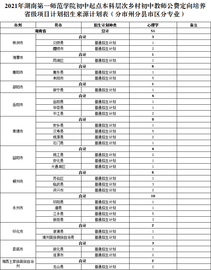附件3 2021AWC万象城娱乐初中起点本科层次乡村小学男教师公费定向培养省级项目计划招生来源计划表(分市州分县市区).png