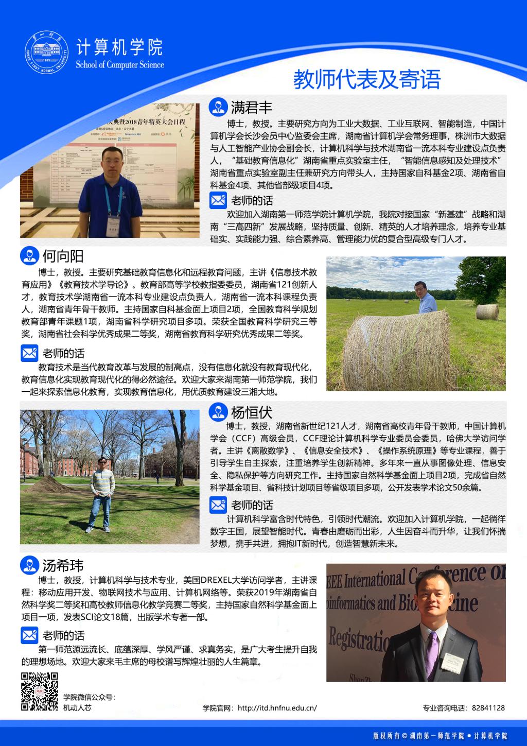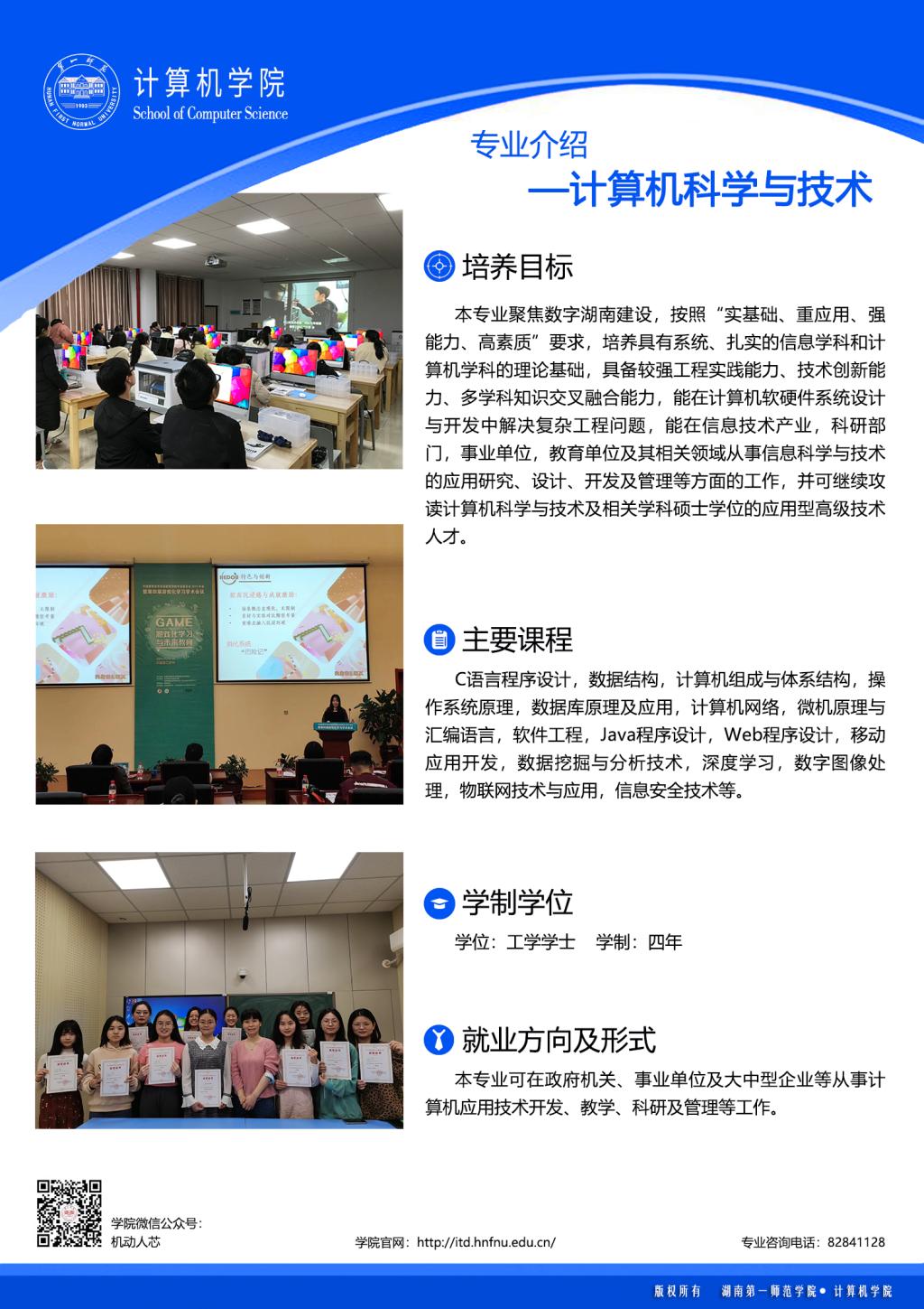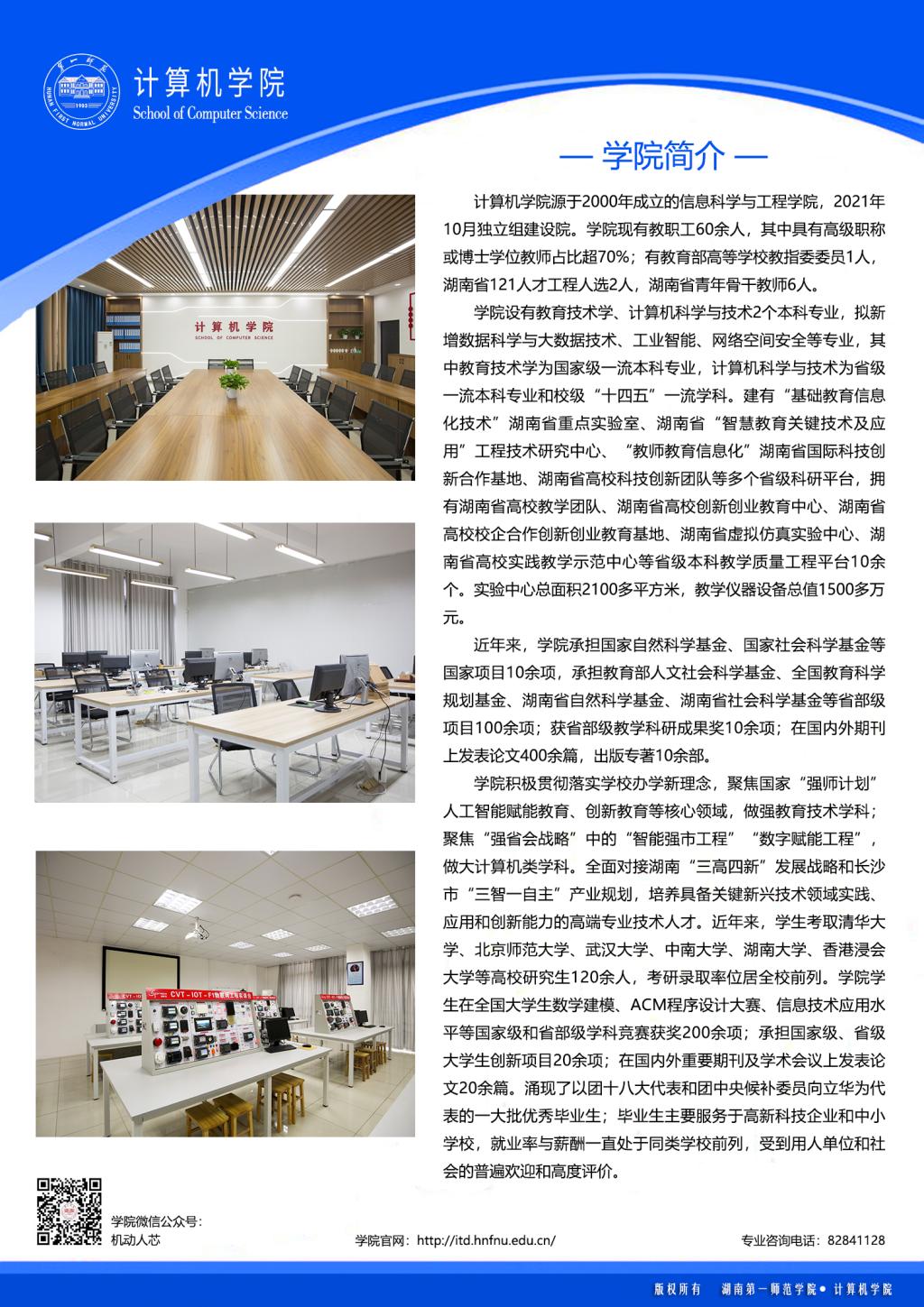 学院立足长沙、面向行业、依托企业、服务区域,主动对接国家和区域经济社会发展需求,以“一四”战略为指引,全面落实 “两坚持两拓展”办学思路,坚定不移地走 “特色鲜明的师范大学”发展之路,确立“建设一流学科,组建一流团队,引育优秀人才,争创优质成果”发展目标,切实履行做大计算机类学科的光荣使命。