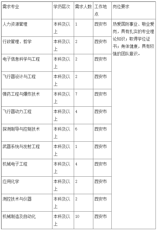 西北工业集团有限公司始终以“人才领先战略”作为事业发展的基础,以建设高素质专业技术人才、职业化管理人才及专门技能人才队伍为公司发展高科技产品的引擎,为有志于国防现代化建设有识之士搭建事业成功的平台。西北工业集团诚挚希望各高校学子与我们一起努力,共同建设“行业领先、国内一流”的现代兵器工业,实现强军富国的理想,公司热忱欢迎您的加盟。
