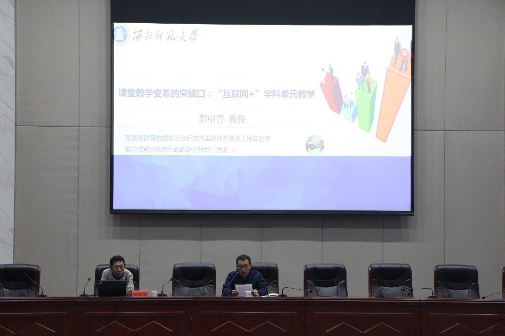 9月22日,西北师范大学智能教育研究院院长、互联网教育数据学习分析技术国家地方联合工程实验室主任、博士生导师郭绍青教授应邀来万象城官网在百熙楼228会议室开展学术讲座。我院全体教师、部分学生代表聆听了讲座,讲座由我院院长满君丰主持。